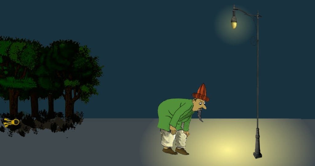 Nasruddin had lost his keys at night and was bent over, checking every inch of pavement under a streetlamp, looking for them.